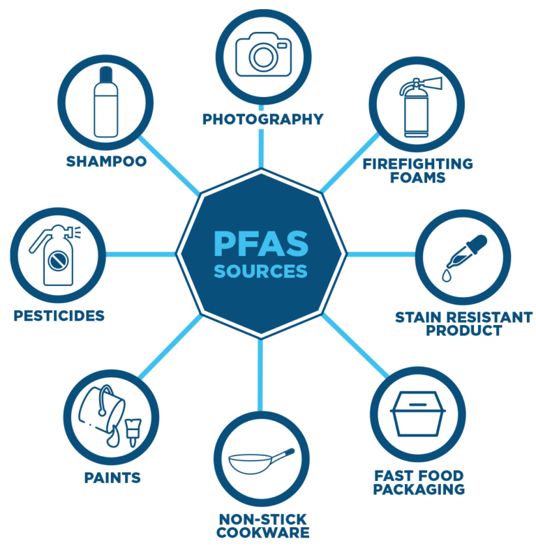 Per- and poly-fluoroalkyl Substances (PFAS) are a group of man-made chemicals that have been manufactured and used around the world since the 1940s. PFAS have unique properties that make them repel water and oil. Because of these properties, these chemicals have been used in protectant formulas and surface coatings of many products, such as carpets, food packaging, non-stick coatings, construction materials and firefighting foams typically used at airports and chemical facilities. Industries in the United States have phased out certain PFAS chemicals because of their associated health risks to humans.
