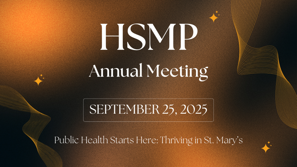 The Healthy St. Mary’s Partnership (HSMP) will host their Annual Meeting on Thursday, September 25, 2025, from 8:30 a.m. – 2:00 p.m. in the SMART Building at the University System of Maryland at Southern Maryland at 44219 Airport Rd, California, MD 20619.